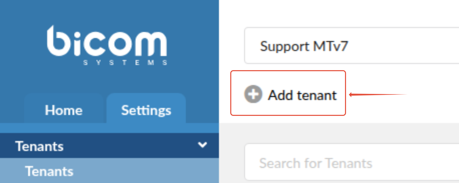 After clicking on the "Add tenant" button, you will be prompted with a new screen.