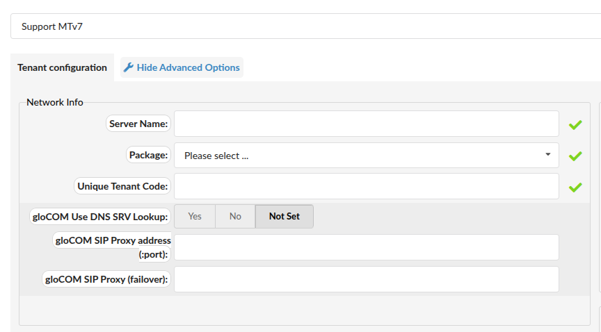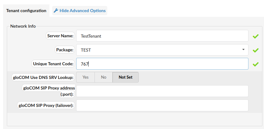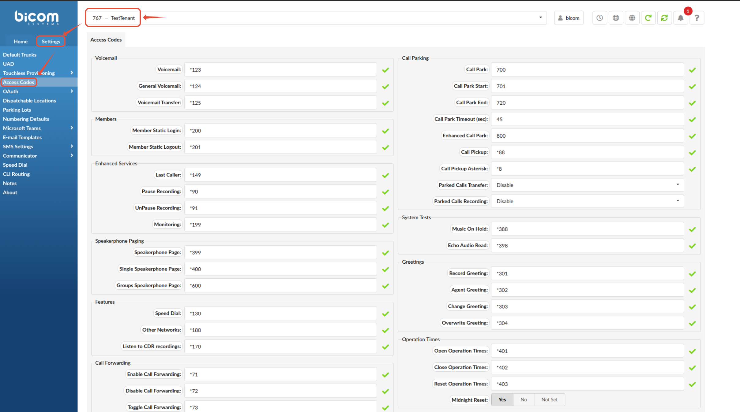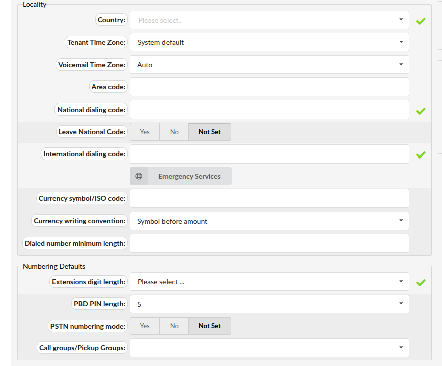 - Enable Tenant to Tenant calls - When this option is enabled, extensions from one tenant will be able to call extensions from another tenant which is done by dialing TENANT+EXT.