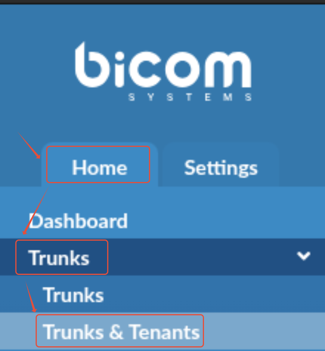 Master Tenant --> Home --> Trunks -->Trunks & Tenants