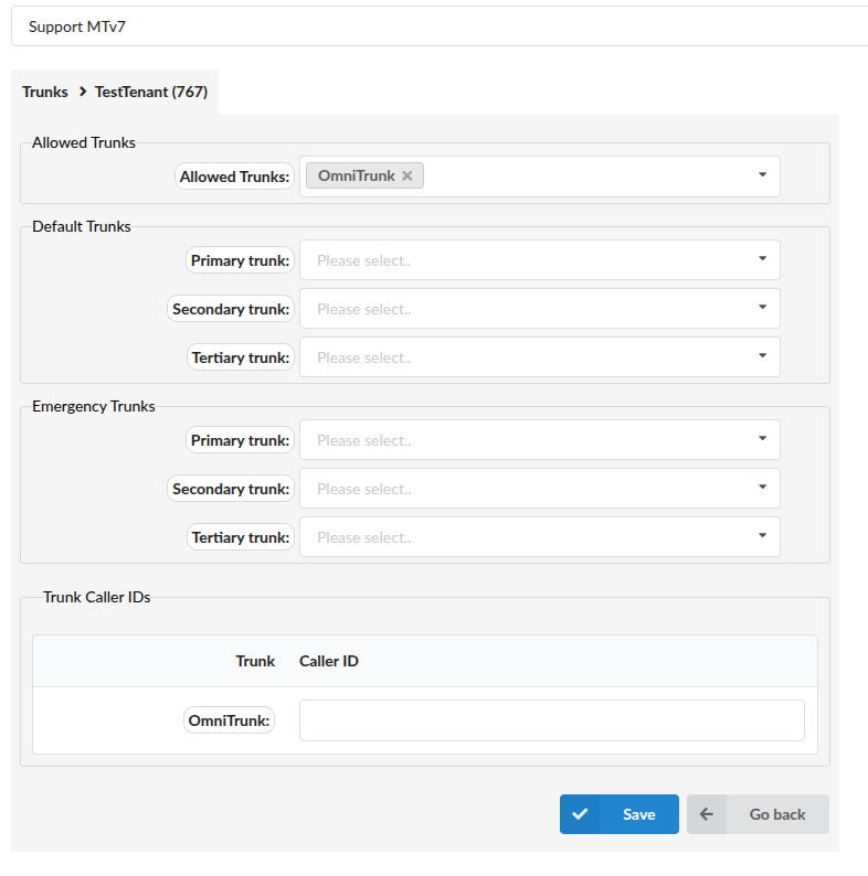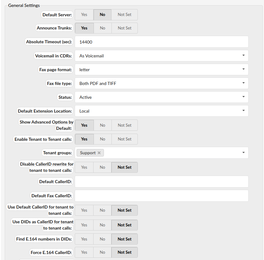 - Default CallerID - If set, outgoing trunk calls assigned to this tenant will use this Caller ID.