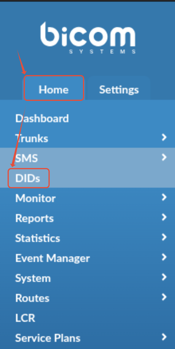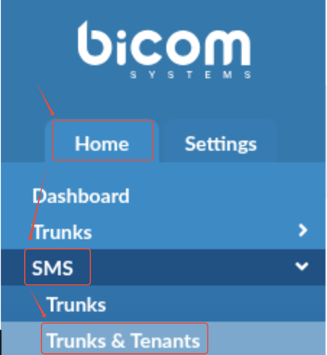 Master Tenant --> Home --> SMS -->Trunks & Tenants