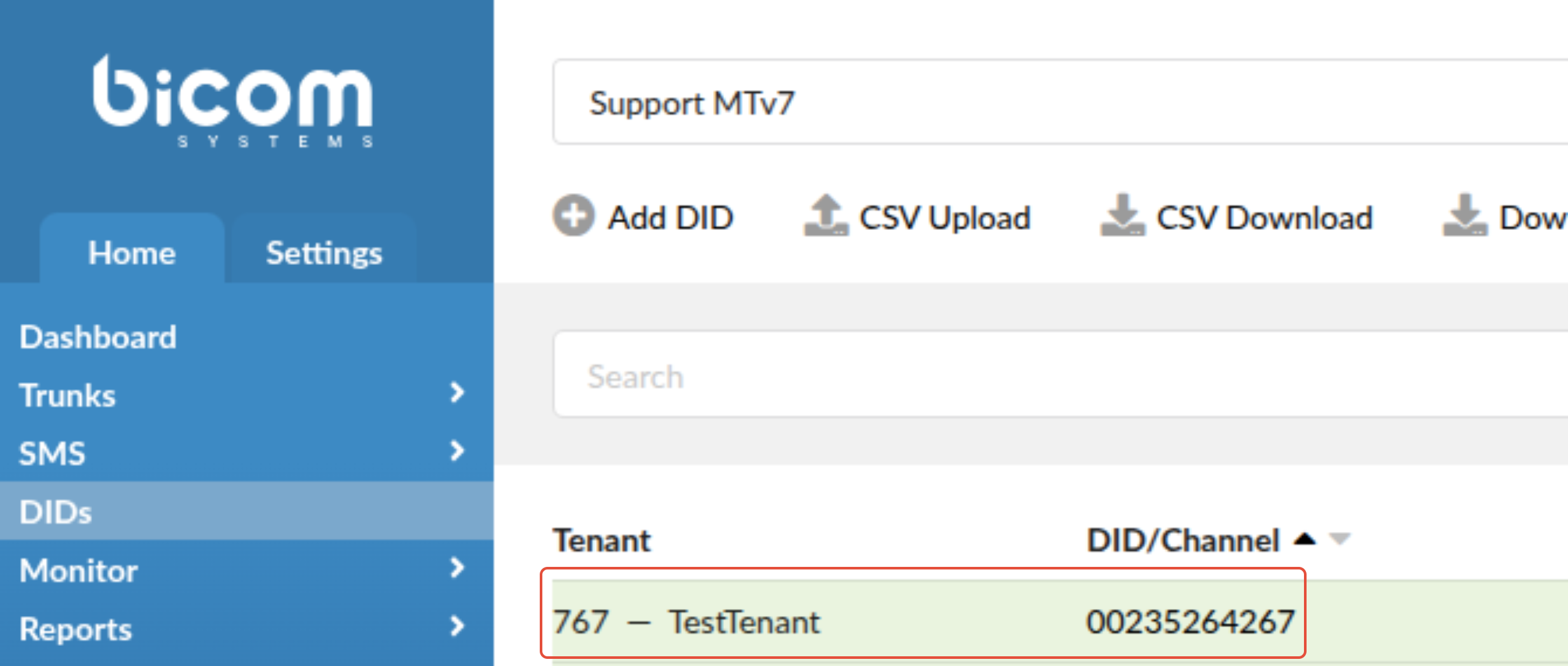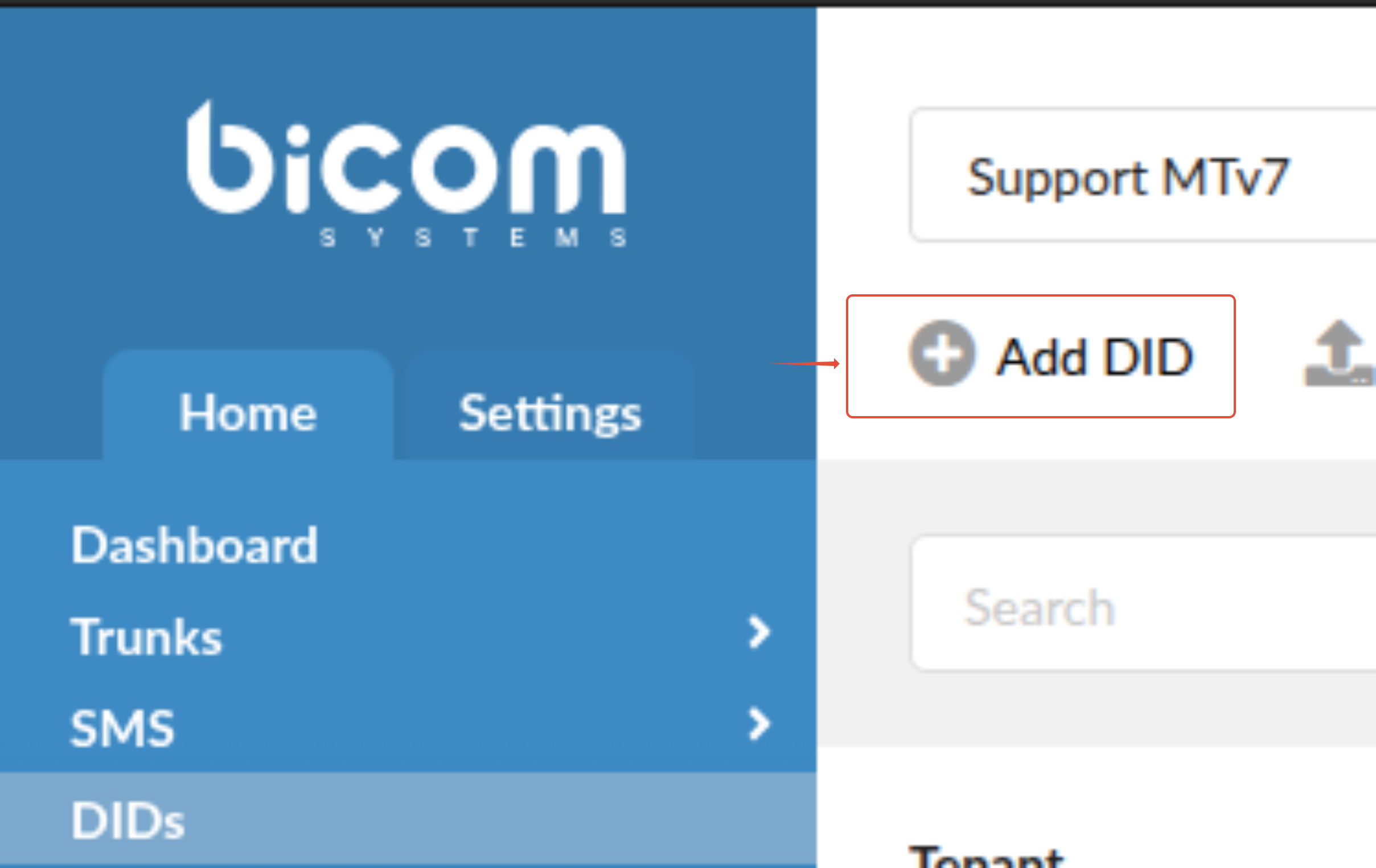 - Tenant - Select which tenant is using a DID. Example: TestTenant 767