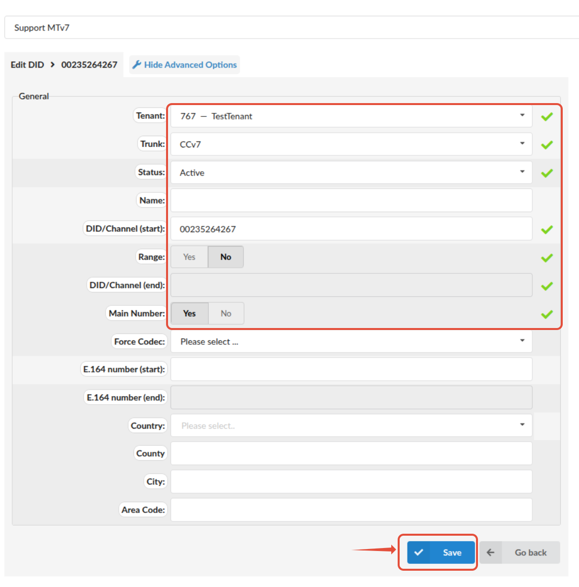 - DID/Channel (start) - Enter your DID number. In case you are creating a DID range, you will enter the first number in the range here.