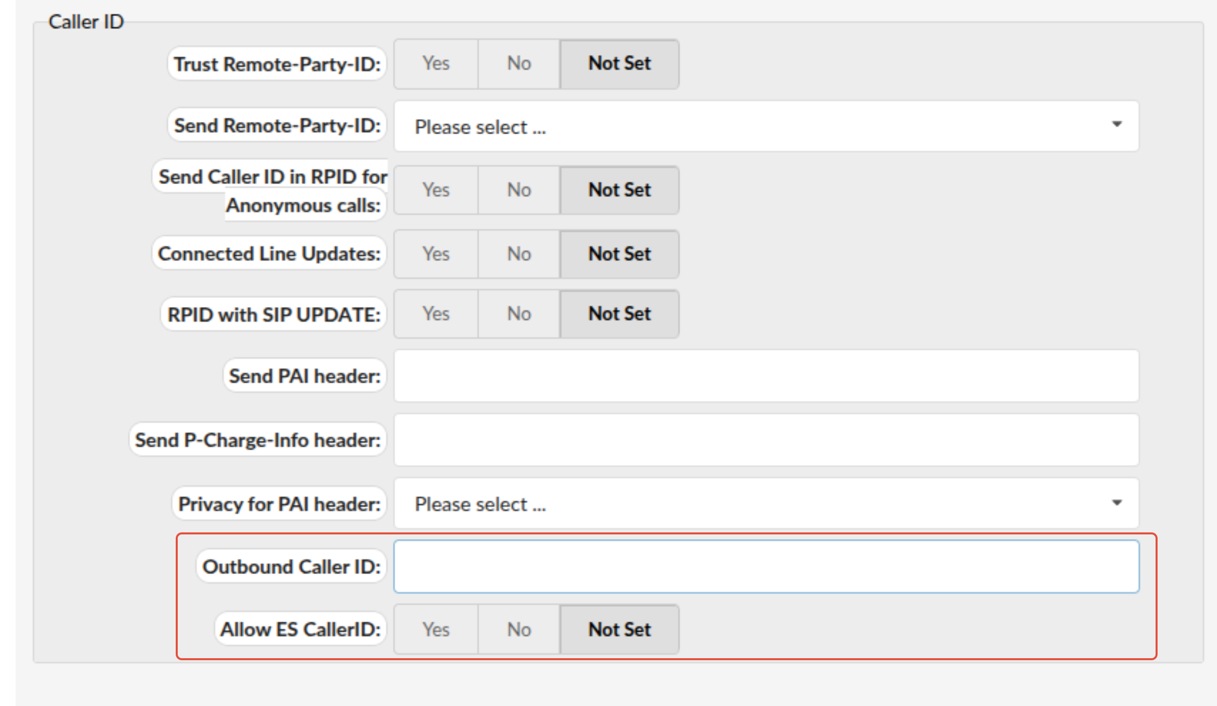 NOTE: The best practice for setting up Trunk Caller ID is to set a proper Caller ID, for example 195412345678, as this is the Caller ID for outbound calls.