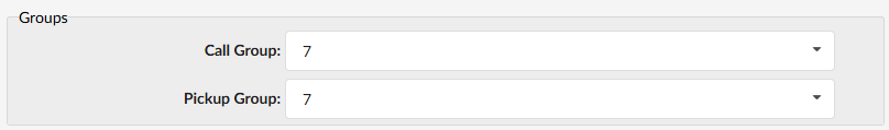 The Default Call/Pickup Group option under Settings --> Servers is used to define which Call and Pickup Group will be set for newly created extensions.