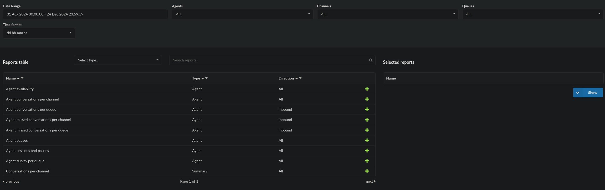 Agents: Choose either a specific agent or all agents for the statistics. Use the provided dropdown menu to make your selection and click the 'Show' button to generate the report.